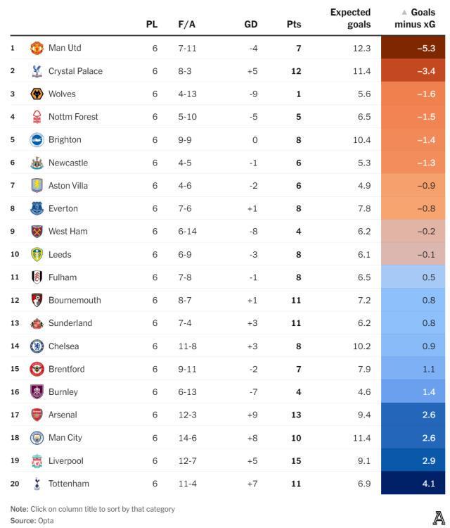 Sports Weekly All Media报告说,英超联赛赛季是六轮比赛,曼联的分类水平与上赛季相同,而Amorin又一次射击。但是,竞争性网络的数据分析最近表明曼联可能不如要点那样糟糕,阿莫林说“比赛结果并不反映球队的表现”并非完全不合理。至少在“预期目标”(XG)方面,曼联实际上是英超联赛中的第一个!曼联的问题在于,真正的目标远低于预期。这意味着球队不知道机会,并且是英超联赛中最糟糕的。预期目标是12.3,但真正的目标是7。第二高的赤字为-3.4,其他团队在-1.6之内。与曼联不同,托特纳姆热刺是一个比iSpeople更高的真实目标的典范,团队的XG仅为6.9,质量y创造机会并不例外。尽管英超联赛的第11位是总理,但其真正的目标是11次,差异为+4.1。利物浦仅超过托特纳姆热刺,XG在9.1中实际上打进了15个进球。一些世界目标掩盖了本赛季卫冕冠军进攻中存在的一些问题。让我们谈谈曼联。上个赛季爱情队的最大问题之一是他无法创造机会。由球队领导的英超联赛的27轮平均每场仅1.3 xg。这是0.3,前11轮由Tenhamhe和Fanny训练。进攻质量没有提高,但退休了。在本赛季的前六轮比赛中,红魔场平均每场2.1 xg,两名新球员Mbermo和Cunya显然有助于激活进攻。当然,另一个因素是曼联的“多辆”,平均每场比赛15.3个进球,WITH来自罚款区以外的34%。实际上,麦克(McOn)是伯莫(Bermo)和库纳(Cunha)的参与,我们是上赛季进球比预期进球更多的三名最佳球员之一,因此我们希望人们等待改善曼联的机会。姆伯姆(Mberm)以8.7 xg的运气命中了20个进球至12.3 xg cunha,但利物浦很幸运。利物浦的绝佳机会只有33%,值得担心他们与曼联相同。自本赛季开始以来,排名第一的得分手只有9枪,但这不是一个很好的现象。 Hakepo(15张照片)和Sobosloi(13张照片)似乎对他们的投篮机会得分很高,但是增加镜头并不会使您更多的镜头。相反,CHIESA在两次射门中攻入了两个进球。像利物浦一样,曼城没有创造足够的机会。 11.4 XG是自2018-19赛季以来的第一次。它是同一时期的第二个最低,但平均每次射击为0.15,是八年来同一时期最高的。这意味着,尽管机会的数量还不够,但平均质量是可以接受的。这与曼城戏剧风格的变化无关。他的攻击变得更加简洁明了,到目前为止,他们已经通过“直接攻击”了,我标志着一个目标。 “直接犯罪”的定义如下:一方面,一方面发动了运动战争的犯罪,至少有50%的球轨迹针对对手的目标,突显了快速进步和坦率的进步,而不是慢速的球控制球。不难想象快速攻击通常会创造出一个好的机会统一空间而不是被迫在人群中起床。在传统巨头中,伦敦的红色和蓝色都是固定的老师。切尔西在六轮比赛中攻入11球,其中6球来自场景。布鲁斯的移动战争XG为5.8,将第七名分类。移动战争仅创造了七个巨大的机会,四次抓住了。 Maresca团队的一个重要进步是射击质量的提高。团队(XGOT)的“预测预测”最高为14.1英超联赛。 “预期目标”和“解雇预测目标”是完全不同的概念。第一个衡量机会质量的质量,即这种质量的机会的可能性。后者衡量了尝试输入的质量,即试图输入的可能性。在远离目标的射击位置,有可能以小角度,射击力和困难的角度将使打破网络的可能性更大。至于阿森纳,球队在本赛季的六轮比赛中赢得了八个系列比赛,但这种独特的能力仍然很强。上个赛季,批评枪手战争的袭击受到了批评,在本赛季的前六轮比赛中,一场比赛的XG平均每场1.1次比比赛,但在最后一轮比赛中,这是一个很大的优势,因为纽卡斯尔联队认为,Atteta团队正在寻找改善运动会战争攻击的方法。