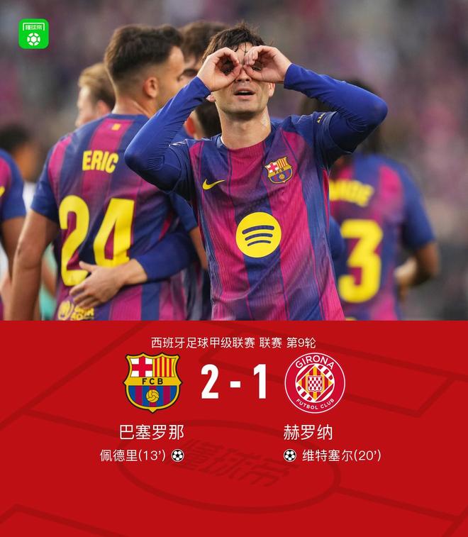 北京时间10月18日,西班牙足球甲级联赛第9轮,巴塞罗那主场迎战赫罗纳。上半场,亚马尔传中,佩德里角球扑出,维特塞尔禁区内高射破门。下半场补时阶段,弗里克对判罚不满,主裁判向他出示红牌。随后替补中后卫阿劳若推射打进致胜一球。最终,巴塞罗那2-1击败赫罗纳。决战第13分钟,佩德里扑出亚马尔传中开出角球。巴塞罗那1-0领先赫罗纳。第20分钟,维特塞尔禁区内上方射门,开出角球。第90+1分钟,赫罗纳1-1战平巴塞罗那。弗里克对判罚不满意,第90+3分钟裁判向他出示红牌。你一定会赢!替补中后卫阿劳霍铲球,巴萨2-1领先吉斯卡布!亮点:两支球队的球员都参加了比赛游戏。比赛立即开始。西甲球员默默抗议海外比赛。官方切断了直播。第3分钟,拉什福德主罚小角度任意球。皮球被加萨尼加拦住。第5分钟,亚马尔接到传球突入禁区。然后射门偏出。第13分钟,佩德里扑出亚马尔传中,将球顶入球门上角。巴塞罗那1-0领先赫罗纳,积20分。第26分钟,德容接托尼·费尔南德斯传球射门,但皮球被加萨尼加扑出。第32分钟,拉什福德主罚任意球,皮球从门框上弹起。第39分钟,希尔射门。球飞得很高。第40分钟,阿莱克斯·莫雷诺倒三角,维特塞尔的射门偏出。第46分钟,巴塞罗那用费尔明代替中场球员,随后换上托尼·费尔南德斯。第47分钟,费尔明远射,但皮球被加萨尼加挡出。第51分钟,费尔明在禁区前方射门,球从门框弹起。第53分钟,亚马尔远射,但被挡出。加萨尼加将球扑出。第61分钟,库巴什进球,但埃里克·加西亚犯规,进球被判无效。第66分钟,拉什福德禁区内近角射门,但皮球被加萨尼加扑出。第71分钟,拉什福德禁区内倒地。裁判表示没有判罚。第75分钟,镜头拍到被替换下场的亚马尔。第90+1分钟,弗里克对判罚不满意,主裁判向他出示红牌。 90+3分钟必胜!替补中后卫阿劳霍铲球,巴萨2-1领先赫罗纳!第90+4分钟,阿劳霍脱衣庆祝,裁判向他出示黄牌。比赛详细报道定期更新...球队阵容技术统计