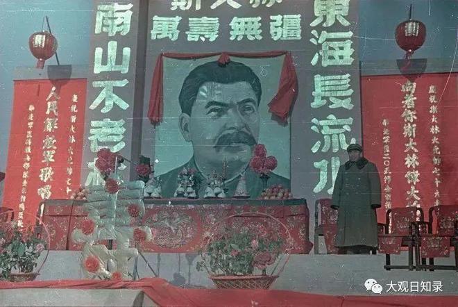 弗拉迪斯拉夫·米科沙(1909-2004),前苏联电影导演、导演、作家、前苏联人民艺术家,斯大林奖和苏联国家奖获得者。 1949年至1950年,他以摄影师身份随摄制组前往中国,参与拍摄纪录片《中国人的胜利》。该纪录片由北京电影制片厂和苏联中央纪录片制片厂联合摄制。 1951年公布后,在国内外引起强烈反响。在中国期间,弗拉迪斯拉夫·米科萨在北京、沉阳、上海、南京、杭州和广州等重要城市拍摄了大量彩色照片。可以说是丁革命时期独特的视觉记录,内容丰富,有各地庆祝游行、城市场景、渡河战役、内战等。 2018年,俄罗斯联邦国家档案馆出版收集了 1,000 多张彩色照片。除了开国典礼的照片外,该藏品还包括全国各地的庆祝活动、建筑景观、城市习俗和内战。这些照片是新中国第一张彩色照片,具有极高的历史和研究价值。借此机会,我想分享1949年12月21日纪念斯大林诞辰70周年活动的照片。1949年12月21日是斯大林的70岁生日。苏联最高苏维埃成立了一个特别委员会,负责策划和组织斯大林的生日。苏联各地举行大规模庆祝活动,向斯大林赠送生日礼物。工人、农民、雇员等纷纷表示在斯大林70岁生日之际向他赠送礼物,以表彰他的功绩、突出业绩和圆满履行职责。斯大林上任前夕当天,各国派代表团前往苏联参加斯大林诞辰庆祝活动。 1949年12月,新中国成立后不久,毛泽东率中国代表团访问苏联,庆祝斯大林70岁生日。为了庆祝斯大林的生日,毛泽东带来了许多礼物,其中大部分是中国当地的特产。山东的大白菜、大葱,潍坊的萝卜,湖南的斯大林雕像,江西景德镇的陶器、冬笋,上海的烟草,浙江的西湖龙井,杭州的纺织品,安徽的祁蒙红茶,福建的生漆,贵州的茅台。还有三处是从斯大林的著作和象牙雕刻中引申出来的。与此同时,全国各地举办了各种活动,庆祝斯大林元帅70华诞。这是华北办事处举办的生日当时在北京。这是一次生日庆祝活动。国家副主席朱德出席活动。中央是一幅斯大林大幅肖像,并配上一首生日歌:东海水长,南山苍松常青,格言斯大林万岁。 现在人们认为这张照片有些夸张,但在中苏关系好的时候这很正常。斯大林的生日是12月21日。从15日开始,《人民日报》头版每天都刊登斯大林专题。 21日,出版了庆祝斯大林诞辰的特刊。通常是六页,但那天增加到了八页,所有内容都献给斯大林,包括广告。 在斯大林70岁生日之际,诗人们在讴歌中倾尽全力。通俗文学,卷。 1、第3期(新年版)《庆祝斯大林诞辰纪念日诗集》,1950年1月1日出版,收录诗艾青、马凡涛等四位诗人。 1949年12月,《中苏友谊》杂志第一卷第二期刊登了郭慕若的诗《我请你活下去》。全诗开头和结尾几乎相同,结尾都是这样的呼喊:“斯大林将军,全人类的解放者,今天是您的70岁生日,我向您呼喊万岁!”画家们也不甘落后。齐白石为斯大林74岁生日画了一只鹰和一只桃子。题目:桃子自内折叠,树干弯曲如青龙。鹰用明亮的眼睛望着远方,想要展开翅膀,像蓝天一样飞翔。白石爷爷应要求创作了这幅画。他画过一些大型画作,但并不合他的胃口。您现在已经写了一篇完整的文章。白石从来没有画过这么大的画,所有有大画的人都是从这幅画开始的。看到那张照片后,我为她感到非常自豪。杏子坞白石长老又想起了这件事。第二个问题:斯大林元帅74岁生日庆祝表。替代标题:齐黄应庆刻八字印(英雄元帅万岁) 1953年3月5日,齐白石完成这幅画后不久,斯大林去世了。